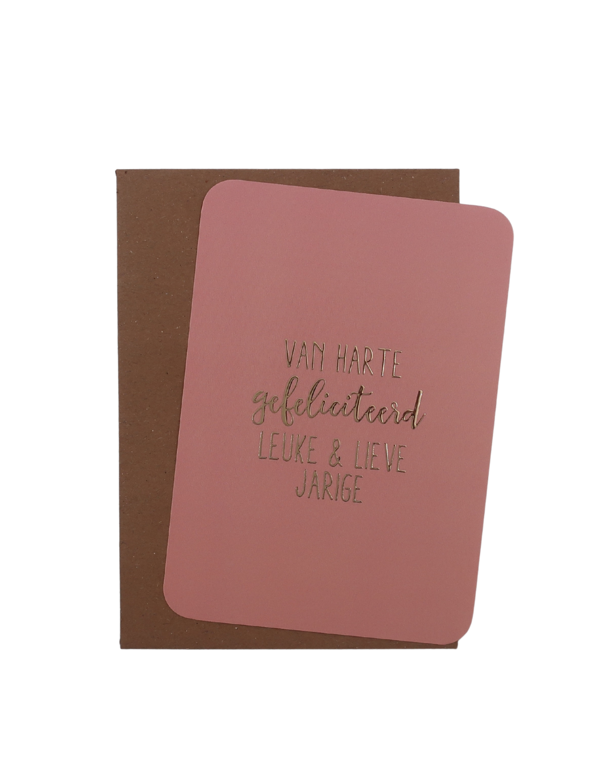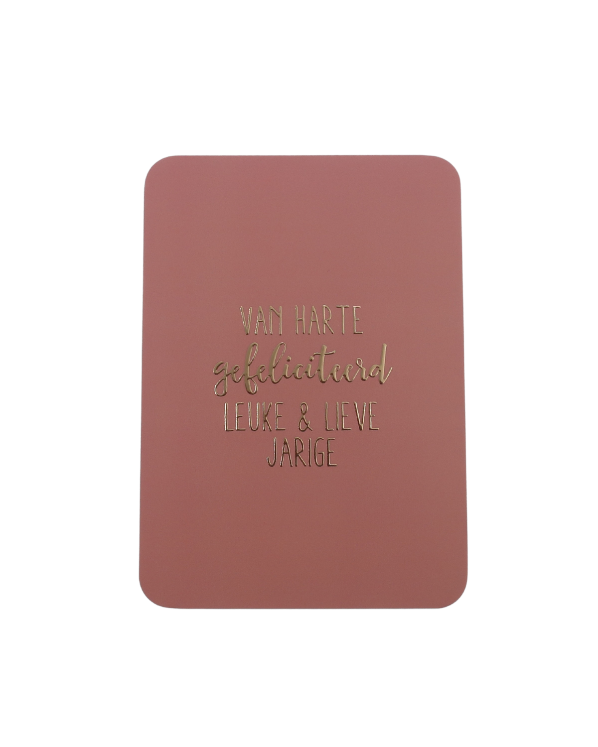 Deze verjaardagskaart met de tekst ‘van harte gefeliciteerd leuke & lieve jarige’ is een A6-kaart van Kaartjes van Maaike.