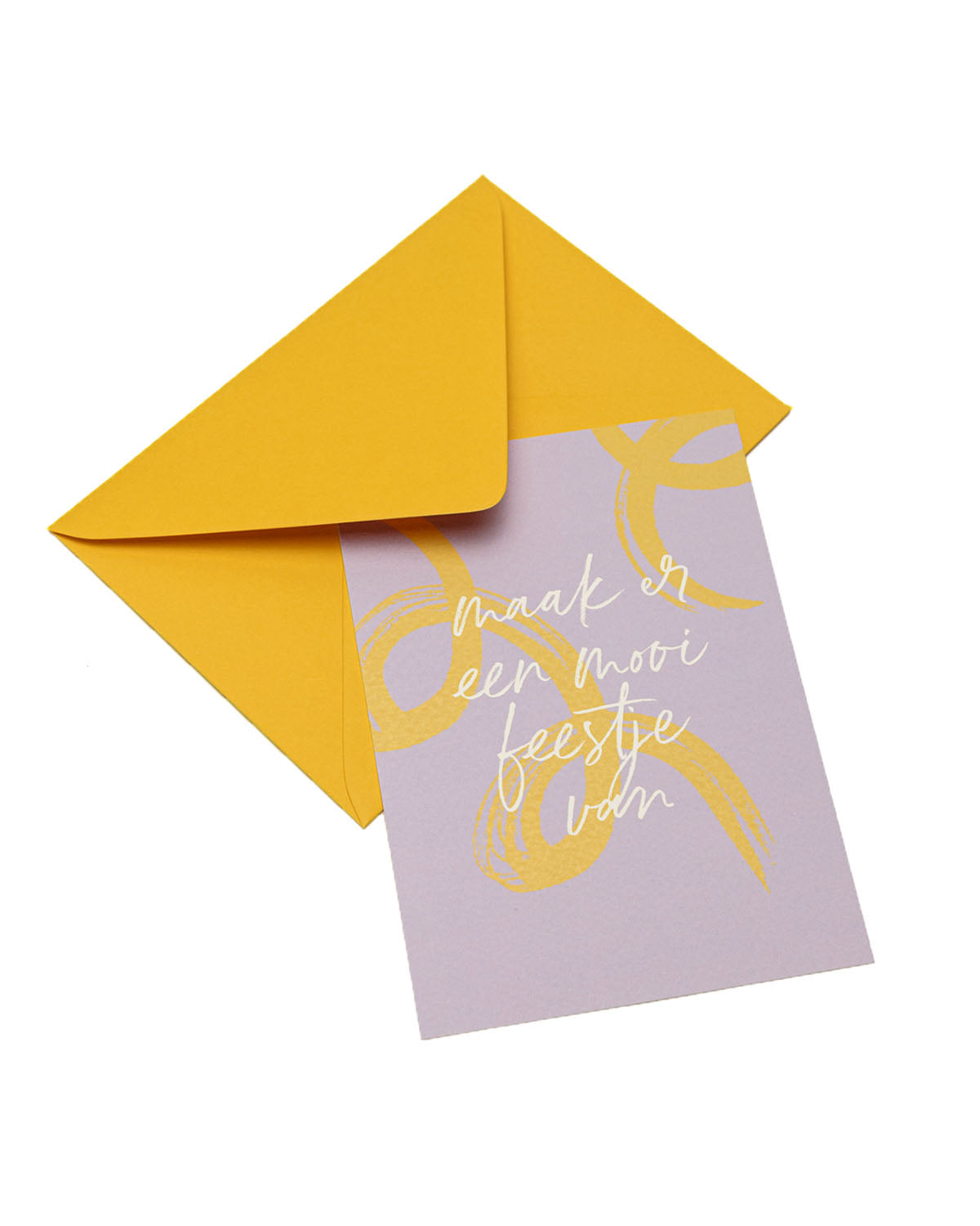 Hoera! Met deze vrolijke kaart wens je iemand een heerlijk feestje of een fijne verjaardag toe. In zachte kleuren en met een speelse uitstraling – precies goed voor een feestelijk gebaar.
