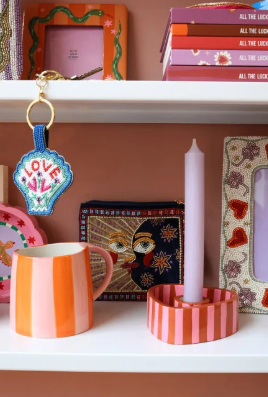 Breng kleur en vrolijkheid in huis met deze handgeschilderde kaarsenhouder in de vorm van een hart! Een echte eyecatcher die je interieur meteen opvrolijkt.