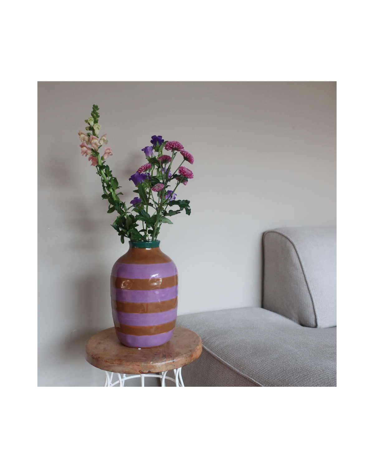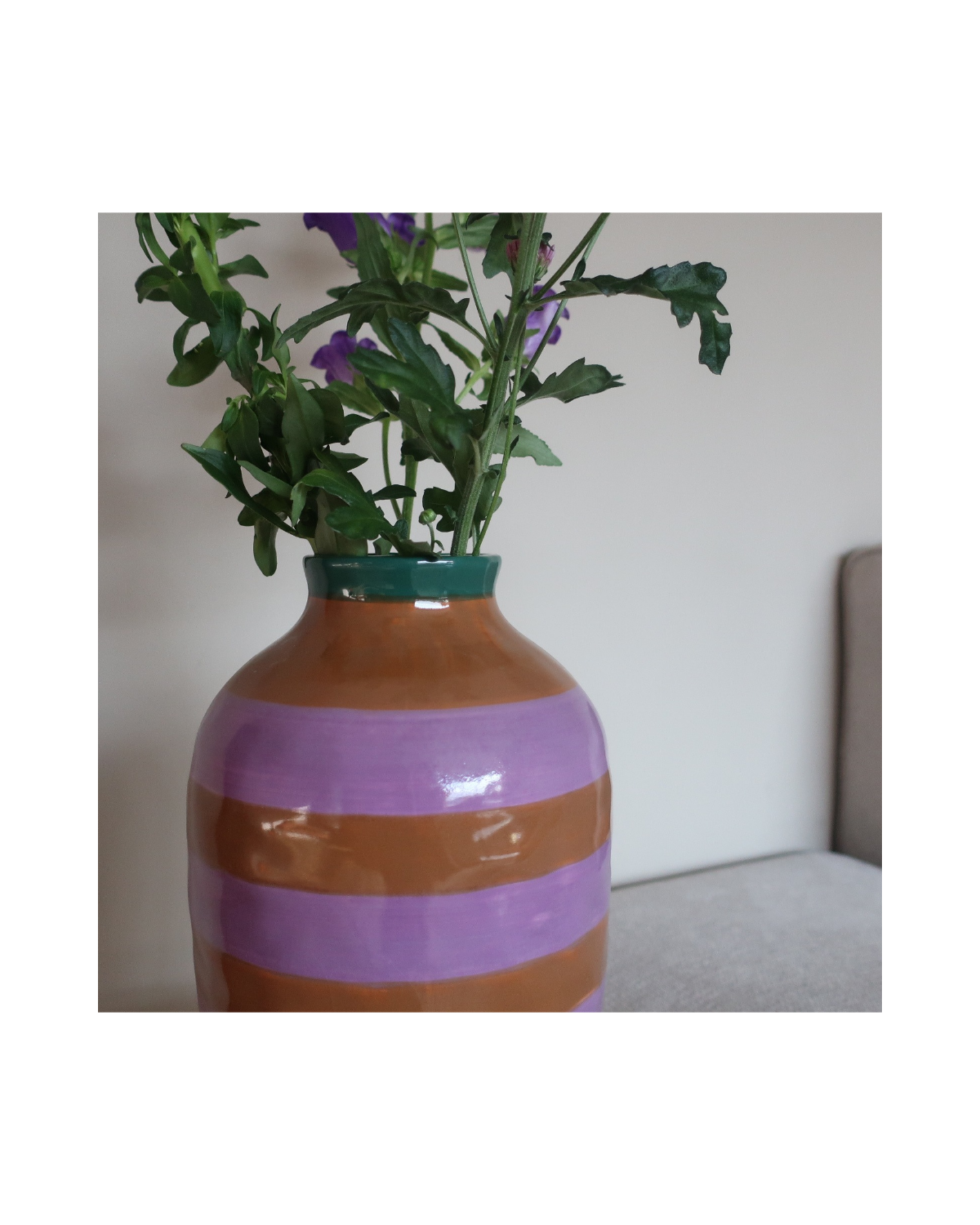 De keramische afwerking geeft haar een luxe, tijdloze look die moeiteloos past in elk huis – van modern tot een tikkie klassiek. Verkrijgbaar in prachtige tinten paars, groen en bruin, die samen een rijke, natuurlijke uitstraling vormen.