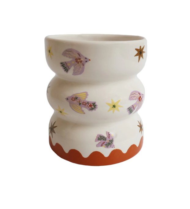 De Mok met Vogels van All The Luck In The World maakt van elk koffiemoment iets bijzonders. De speelse illustratie, rijke kleuren en verfijnde details zorgen voor een vrolijke, luxe uitstraling die meteen sfeer brengt aan tafel of op je bureau. Perfect voor je ochtendkoffie, cappuccino of thee – en minstens zo mooi om gewoon te laten staan.