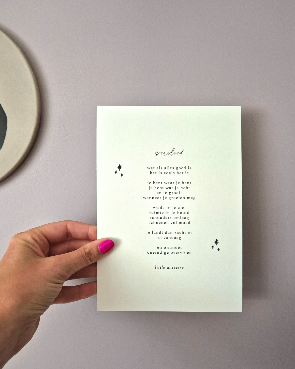 Een klein kunstwerkje met een grote boodschap. Hang ‘m op, zet ‘m neer of geef ‘m cadeau. Dit gedicht van Britt Nelissen brengt elke dag een vleugje inspiratie en positiviteit. 🌿💫